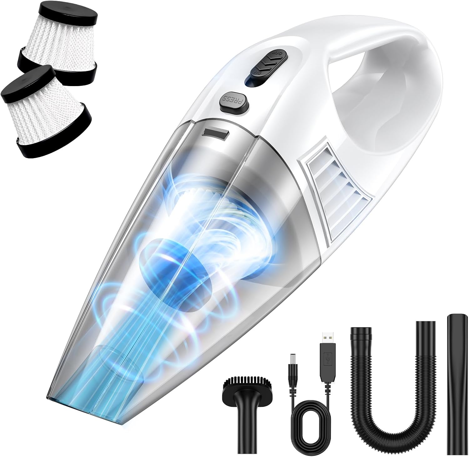 Strong suction handles dust crumbs pet hair easilyCordless portable vacuum ideal for home car use