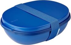 Includes a supplementary plastic compartment to keep fruit or cold snacks separate.